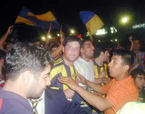 Maçın bitiş düdüğü ile birlikte binlerce Fenerbahçe taraftarı, Ofis semtinde sevinç gösterilerinde bulundu. Kutlamalar sırasında ellerinde Fenerbahçe bayrakları olan taraftarlar ile Galatasaray taraftarları arasında söz düellosu başladı.