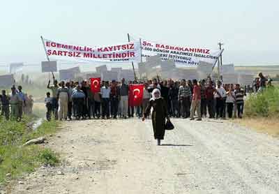 Köy meydanına kadar slogan atarak gelen köylüler burada basın açıklaması yaptılar. Köylüler adına konuşan Hasan Sıcaközül, Ağanın köyde zorbalıkla her şeye hakim olduğunu öne sürerek, "Cengiz ve Reşit Sinanlı adlı ağalarımız köyde her türlü zorbalığı yapmışlardır. Bizlerin olan topraklarımızı haksız olarak kendi adına yazdırmışlardır. Bu köy ağamızın değil, bizimdir. Yetkililerden yardım istiyoruz. Ağamız ölülerimizi gömmek için bile mezarlık yapmamıza izin vermiyor. Bizler şimdi ağamızdan korkuyoruz ve köyden çıkaracağını biliyoruz" dediler. Basın açıklamasının ardından, köylüler toplu olarak Ağanın evinin önüne kadar yürüdüler. Ağanın evine gelen köylüler kapıya siyah çelenk bırakarak buradan ayrıldılar.