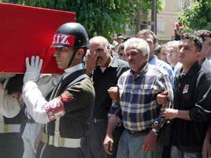 Tunceli merkeze bağlı Çiçekli Köyünde terör örgütü PKK/KONGRA-GEL militanları ile girilen çatışmada 3 silah arkadaşı ile birlikte şehit düşen Piyade Er İsmet Esen için Ulu Camiide öğle namazına müteakip tören düzenlendi.