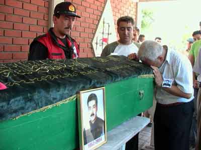 Orhan Bayhan'ın eşi Meryem Bayhan, eşinin tabutuna bakıp gözyaşlarına boğulurken, Bayhan'ın en küçük oğlu 4 yaşındaki Berkay'ın tüm olanlardan habersiz babasının tabut üzerindeki fotoğrafını öpmesi ise yürekleri dağladı. Bayhan, kılınan cenaze namazının ardından Asri Mezarlık'ta toprağa verildi.