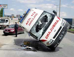 Birecik İlçesinde trafik kazasında yaralanan Ali Güneşi (31) Gaziantepe getiren Erkan Okay yönetimindeki 63 PH 563 plakalı 112 Acil Ambulansı, Çimento Kavşağında Mehmet Güneş idaresindeki 27 UK 271 plakalı otomobille çarpışarak devrildi.
