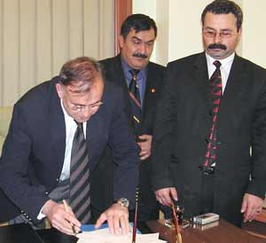 Büyükşehir Belediye Başkanı Asım Güzelbey ve sendika yöneticileri daha sonra toplu iş sözleşmesini imzaladı.