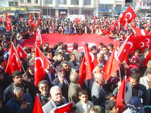 Kiliste, binlerce vatandaş Mersindeki Nevruz mitinginin ardından Türk bayrağına yapılan saldırıyı protesto için yürüdü.