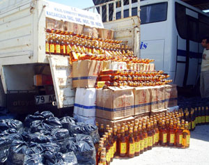 Alınan bilgiye göre, Emniyet Müdürlüğü Kaçakçılık ve Organize Suçlarla Mücadele Şube Müdürlüğü ekiplerinin 3 ayrı operasyonda ele geçirdiği 439 şişe kaçak içkinin sahibi oldukları iddia edilen M.Uğur A. (34), Ahmet G. (23) ve M.Ali K. (18) gözaltına alındı. İfadeleri alındıktan sonra adliyeye sevk edilen zanlılar, her birine 70 bin 893 YTL olmak üzere toplam 212 bin 679 YTL para cezası kesilerek tutuksuz yargılanmak üzere serbest bırakıldı.