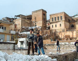 7 bin yıllık tarihi yapısıyla açık hava müzesi görünümündeki Mardin’i ziyarete gelen turistlerin ilk uğrak yerleri olan Cumhuriyet Meydanı, Atatürk Büstü ve Mardin Müzesi’nin önünde biriken karları vatandaşlar el birliğiyle temizledi. Turizme hizmet amacı ile Cumhuriyet Meydanı’nda biriken karları temizlediklerini belirten Vedat Pamukçu isimli vatandaş, "Mardin bir turizm şehri. Buraya her gün binlerce insan ziyarete geliyor. Biz de Mardinli olarak hem Atatürk’e olan vefa borcumuzu ödemek, hem de Mardin’e gelen turistleri memnun etmek için buraları temizliyoruz" dedi.