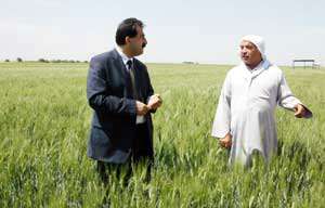 Mardinin Kızıltepe İlçesi Kaymakamı Recai Akyel, ekili arazileri yakından takip ederek, mahsulün durumu hakkında çiftçilerden bilgi alıyor.