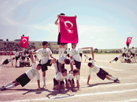 Ardından Endüstri Meslek Lisesi Bando takımı eşliğinde ve tören komutanı yönetiminde tüm okulların resmi geçit töreni yapıldı. Kocatepe İlköğretim Okulu ile Vali Kemal Nehrozoğlu İlköğretim Okulları Midyat Aziz Önen Lisesi, Endüstri Meslek Lisesi öğrenci grupları gösterilerini sundular.