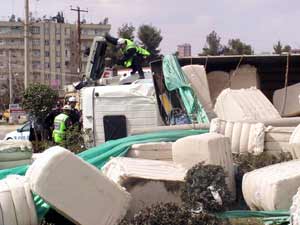 Üzerindeki pamuk balyalarının parka saçıldığı kamyonda bulunan Ersen Ereli ile Remzi Ereli yaralandı. Yaralılar, ambülansla Devlet Hastanesine kaldırılırken, kaza sebebiyle kavşakta trafik aksadı. Trafik ekiplerinin yoğun çabaları sonucu olay yerine gelen vinç tarafından devrilen kamyon kaldırılarak yol trafiğe açıldı.