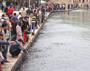 Ziyarete gelenler göldeki balıklara elleriyle yem verirken, ilginç görüntüler oluştu. Şanlıurfa’ya Ramazan Bayramı’nda gelen yerli ve yabancı turistlerin en büyük ilgi gösterdiği mekanlardan birisi olan Balıklıgöl’e gelen ziyaretçiler, kutsal sayılan balıklara yem attılar