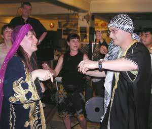Türk usulü kına gecesini canlandırmaya çalışan turistler, daha sonra kendi ellerine de kınalar yaktı. Ellerinde mumlarla gelin hanımın etrafında oynayarak dönen turistler, daha sonra damattan gelinin yüzünü açmasını istedi.