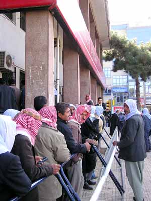 DGD ödemelerini alabilmek için sabahın erken saatlerinde banka önünde uzun kuyruklar oluşturan çiftçiler, "Düzenlemeden dolayı banka yetkililerine teşekkür ediyoruz. Kimse kimsenin hakkını çiğnemiyor. Sırası gelen herkes zamanında fazla beklemeden alabiliyor" dediler.
