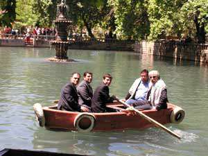 Harran Üniversitesinin davetlisi olarak Şanlıurfaya gelen "Ekmek Teknesi" dizisinin oyuncularından "Heredot Cevdet" lakaplı Hasan Kaçan ile "Kirli" lakaplı Kadir Çöpdemir, Balıklıgölde tekne turu yaptı.