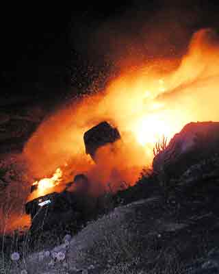 Kaza, saat 02.00 sıralarında Şanlıurfa-Gaziantep Karayolu'nun 10. kilometresinde meydana geldi. Şanlıurfa istikametine seyreden Ömer Atış yönetimindeki benzin yüklü TIR tanker, virajı alamayarak şarampole yuvarlandı. Kazadan yara almadan kurtulan Atış kendisini araçtan dışarı atarken, tankerde çıkan yangın Şanlıurfa Belediyesi'ne ait 4 itfaiye aracının müdahalesiyle yaklaşık yarım saatte söndürüldü. Tankerden sızan benzin, çevredeki telefon direği ve yerdeki otların tutuşmasına neden oldu. Kaza nedeniyle 1 saat kadar trafiğe kapanan yolda uzun araç kuyrukları oluştu.