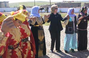 Köye gelişlerinde Bozova Kaymakamı Mehmet Murat Çekmen ile köylüler tarafından karşılanan Tuğgeneral M.Tevfik Bedük, öğrencilere büyük ilgi gösterdi. Davul-zurnalarla karşılanan Ayşem Merih Bedük, folklor oynayan genç kızların yanına gelerek halaya katıldı. Köylü kadınlarla bir süre halay çeken Merih Bedük, kadınlar tarafından çiçek yağmuruna tutuldu.