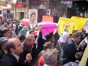 DEHAP binası önünde düzenlenen basın açıklamasında, Hepimiz Birer Ümitiz, Çocuk Katilleri Hesap Verecek, Çözüm Yolu İmralıdan Geçer ve Gençlik Aponun Fedaisidir dövizleri taşıyan grup, Kürtçe Şehit Namırın (Şehitler Ölmez), Ey Şehit! Riyate, Riyame (Ey Şehit! Senin Yolun, Bizim Yolumuzdur), Biji Seruk Apo (Yaşasın Lider Apo) ve Baskılar Bizi Yıldıramaz sloganları attı. DEHAPlılar adına açıklama yapan Halit Başer, halkın demokratik meşru eylemlerine tahammül edilemediğini belirterek, "Son olarak Kürt halk önderi Abdullah Öcalanın uluslararası komployla Türkiyeye getirilişinin 6. yılı nedeniyle birçok ilde protesto gösterisi yapılmıştır. Halkın yoğun katılımıyla yapılan demokratik meşru eylemlere yine tahammül edilememiştir. Diyarbakır, Şırnak, İstanbul, İzmir başta olmak üzere birçok ilde saldırılar olmuştur. Mersinde ise 19 yaşındaki Ümit Gönültaş, polisin silahlı saldırısıyla katledilmiştir. Özellikle Mersin polisinin bu gibi katliamları yeni değildir. 2002 Nevruzunda da 2 kişi katledilmiştir. Sıkılan bu kurşunlar, halkımıza ve onun demokrasi ve özgürlük mücadelesine, barışa, halkların birliğine sıkılmıştır. Bu katliamı yapanlar yargılanmalı ve cezalandırılmalıdır" diye konuştu.