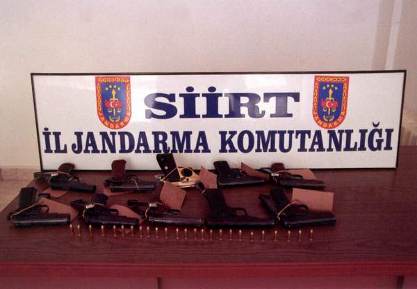 Öte yandan aynı araçta alınan bir duyum üzerine, Siirt Sulh Ceza Mahkemesinden alınan karara istinaden 56 M 0187 plakalı yolcu minibüsünde yapılan aramada yolculardan R.Eye ait olduğu tespit edilen siyah poşet içerisinde 6 adet Lama, 2 adet Map, 1 adet Baretta ve 1 adet Star marka 7.65 mm. tabanca ile bu tabancalara ait 10 adet tabanca şarjör ve 25 adet 7.65 mm. tabanca fişeği ele geçirildi. R.E isimli şahıs, Siirt Cumhuriyet Başsavcılığınca tutuklanarak cezaevine konuldu.