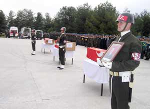 Bu arada, şehit olan 3 güvenlik görevlisi için Siirt 3. Komandosu Tugay Komutanlığında tören düzenlendi. Saat 15.00te düzenlenen törene Siirt Valisi Murat Yıldırım, 3. Komando Tugay Komutan Yardımcısı Kurmay Albay Selçuk Ünal, Belediye Başkanı Mervan Gül ile çok sayıda kamu kurum ve kuruluş amirleri katıldı.