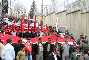 Yürüyüşte bölücü terör örgütü PKK/KONGRA-GEL sözde lideri Abdullah Öcalan ve terör örgütlerine lanet yağdırıldı.