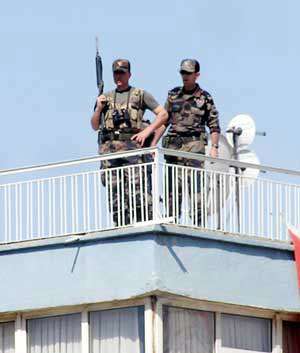 Tören alanına alınan vatandaşlar, sıkı üst aramasından geçirilirken, polis ve askerler çevrede adeta kuş uçurtmadı. Kutlamalara devam edilen Atatürk Stadında da, keskin nişancılar çevre binaların çatılarından çevreyi sıkı şekilde gözlem altına aldı.