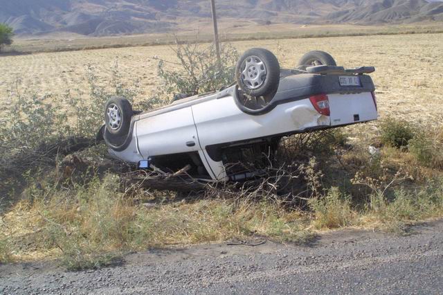 Yoldan çıkarak takla attıktan sonra, beraberinde iki adet ağaç da deviren pikabın içinden sağ kurtulmayı başaran sürücü şans eseri araçtan sağ çıktı.