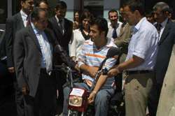 Vatani görevi sırasında içinde bulunduğu aracın devrilmesi sonucu sakatlanan ve tekerlekli sandalyeye mahkum olan İbrahim Batmaza Vali Osman Güneş yardım elini uzattı.