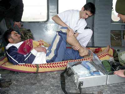 Helikopterle Akarsu Köyü’nden alınan Levent, Ali ve Devrim Kor’a ilk müdahale helikopter içerisinde yapıldı.