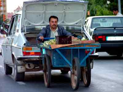 Aksaray'da hareket halinde bulunan otomobilin bagajında el arabasını çekerek götüren vatandaş, görenleri hayretler içinde bıraktı. Atatürk Bulvarı üzerinde yaşanan olay görenleri hayrete düşürdü. Evine daha hızlı gitmek için otomobilin bagajına oturan ve bagajdan üç tekerlekli el arabasını tutan vatandaş, bulvar üzerinden evinin yolunu tuttu. Trafikte seyir halinde olan araçlar ise hayatını tehlikeye atarak, trafiğe bu şekilde çıkan vatandaşı hayretler içinde izledi