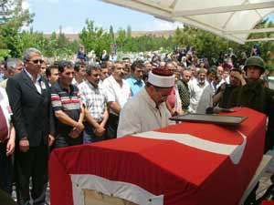 Aksaray Belediyesi Mezarlıklar Müdürlüğü morgundan öğle saatlerinde gözyaşları arasında alınan şehidin naaşı, Ervah Kabristanlığında kılınan cenaze namazının ardından askerlerin omuzlarında Aksaray Şehitliğine getirildi.