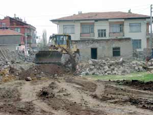 Aksaray Belediyesi, imar planında yeşil alan olarak görülen bölgelerde bulunan binaları yıkmaya başladı. Aksarayda yeşil alanlar üzerine kaçak olarak kurulan evler, belediye ekipleri tarafından yıkılıyor.