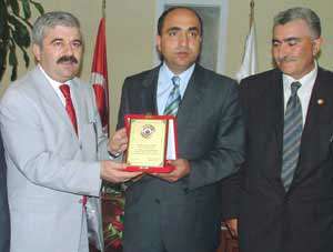 Daha sonra Birlik Başkanı Doğan Ceylan tarafından Başkan Palta ve başkan yardımcılarına teşekkür plaketi verildi.