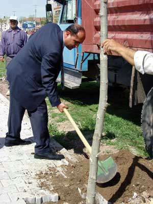 Çalışmaları inceleyen Belediye Başkanı Nevzat Palta da işçilerle birlikte fidan dikti. Aksarayı tekrar eski yeşil günlerine dönüştürmek istediklerini ifade eden Belediye Başkanı Nevzat Palta, "Aksarayı yeniden o eski yeşil günlerine döndürmek için belediye olarak şehrimizin her yerinde ağaçlandırma ve yeşillendirme çalışması yapıyoruz. Özellikle şehrin girişleri, E-90 karayolu orta refüjleri ve terminal yolunda yeşillendirme ve ağaçlandırma çalışmalarımız devam ediyor. Her biri 9 yaşında ve 5 metre uzunluğunda olan 500 adet çınar fidanı ile 400 adet top akasya ve 250 adet mavi selvi fidanı aldık. Şimdiye kadar sadece şehir merkezine yaklaşık 15 bin fidan diktik. İnşallah diktiğimiz fidanların bakımını iyi yaparak Aksarayı yeşillendireceğiz" dedi.