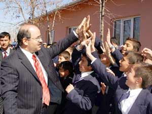 Bakan Çelik, öğrencilerle de yakından ilgilendi. Hayırseverlerle fotoğraf çektiren Bakan Çelik, hayırseverlere, "Ya isimler mezar taşına yazılacak ya da okullara yazılarak yaşatılacak" dedi.