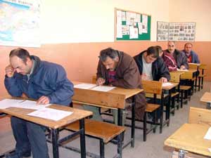 Bu arada, inşaat ustalarının sınavda soruları oldukça dikkatli şekilde yanıtlamaya çalıştıkları gözlendi.