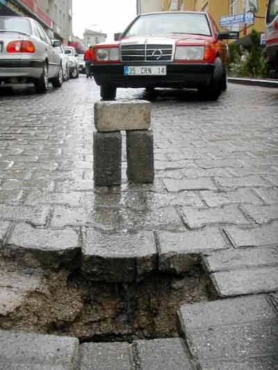 Caddeden araç geçmemesi ise şans olarak nitelendirilirken, belediye ekipleri yağan yağmur sonrasında yıkılan drenaj kanalları ve Akbank Caddesi’nde kanalizasyon hattını tamir etmek için çalışmalara başladı.