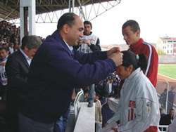 Aksaray Belediye Başkanı Nevzat Palta, şampiyon sporcuları ödüllendirdi. Aksarayspor-Kahramanmaraşspor maçının devre arasında protokol önünde düzenlenen törende, Palta, Milli Egemenlik Koşusunda Türkiye birincisi olan Mehmet Çağlayan ile 10 kilometre koşuda Genç Kızlar Türkiye Şampiyonu Narin Sağlam ve 20 kolemetre yürüyüşte Genç Bayanlar Türkiye Şampiyonu Handan Koçyiğite birer cumhuriyet altını hediye etti. Palta, sporculara başarılarının devamını diledi.