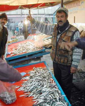 Aksaray Belediyesi Balık Pazarı’nda dükkanları bulunan balıkçı esnafı, müşteri toplamak için rekabete girerek fiyatların yüzde 150 düşmesine neden oldu. Özellikle hamsi fiyatları 15 gün öncesine kadar 3 milyon lira iken, rekabetle birlikte fiyatlar 1 ila 1 buçuk milyon liraya kadar düştü. Rekabet nedeniyle fiyatların düşmesini fırsat bilen vatandaşlar ise bol bol balık alıyor.