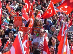 Mersindeki nevruz kutlamaları sırasında Türk bayrağına yapılan saldırıya tepki göstermek amacıyla Aksarayda Türk bayrağına saygı yürüyüşü düzenlendi.