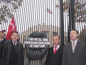 Basın açıklamasının ardından grup adına seçilen temsilciler, üzerinde ’Türk Metal Sendikası Genel Başkanı Mustafa Özbek ve Yönetim Kurulu" yazılı siyah çelengi ABD Büyükelçiliği’nin Atatürk Bulvarı tarafındaki bahçe duvarına bıraktı. Grup daha sonra olaysız dağıldı.