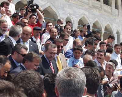 Erdoğan Kocatepe Camii’nden ayrılana kadar vatandaşlarla sohbet etmeyi tercih etti. Başbakan Erdoğan’ın korumaları, vatandaşların yoğun ilgisi nedeniyle zor anlar yaşadı. Erdoğan, Kocatepe’den ayrılışı sırasında bir vatandaşın "Başbakanım Fransa’dan" diyerek uzattığı cep telefonuna "Fransa’ya selamlar" dedi. Erdoğan, elini öpmek için yanına yaklaşan ve korumaları tarafından uzaklaştırılan bir vatandaşı da yanına çağırdı. Erdoğan ve beraberindekiler daha sonra Kocatepe Camii’nden ayrıldı.