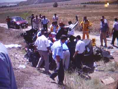 Kazanın görgü tanıklarından biri, ’’Önce patlama gibi bir ses duyduk. Ortalığı duman kapladı. Daha sonra 2 aracın birbirine çarptığını gördük. Yardım için koşarak araçların başına gittik. Yerde 3 çocuk ve 2 bayan cesedi gördük. Mercedes’te ise sıkışmış vaziyette 2 yaralı vardı. Hemen telefona koşarak ambulans istedik. Kartal otomobilin tekeri patlamış olabilir ya da şoförü uyudu" dedi .