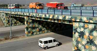 Ankara Büyükşehir Belediyesi, Doğukent Caddesi Mamak Köprü dönüş duvarlarını doğa ile uyumlu renk ve desenlerle boyadı.