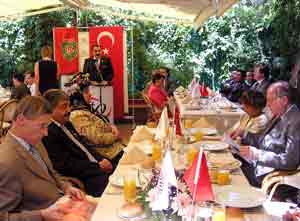 4 eski milletvekilinin geçen hafta Washington Restaurant'ta ABD Büyükelçisi ile AB ülkelerinin büyükelçilerine yemek vermesinin ardından, bugün de şehit aileleri, gaziler ve ATO, aynı restaurantta aynı büyükelçileri yemeğe davet etti. Türkiye Harp Malülü Gaziler Şehit Dul ve Yetimleri Derneği ile ATO birlikte büyükelçilere yemek verdiler. Washington Restaurant'ta saat 12.30'da başlayan yemeğe Hollanda, İngiltere, Slovenya büyükelçilik düzeyinde katılırken, Almanya, İsveç, Fillandiya, Estona, Slovakya, İtalya, Çek Cumhuriyeti, Macaristan ve Belçika ile ABD de diplomat düzeyinde katıldı. Geçen hafta 4 eski DEP milletvekilinin verdiği yemeğe 6 büyükelçinin yanısıra AB Türkiye Tamsilcisi Hans Jörg Kretschmer katılmıştı.
