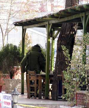Alınan güvenlik önlemlerinin ardından bomba uzmanları geldi. Patlamalara karşı dayanıklı özel kıyafetleri giyen bomba uzmanı, bavula fünye yerleştirdi.