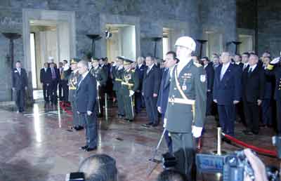 Cumhurbaşkanı Sezer, Aslanlı Yol’daki yürüyüşünün ardından Atatürk’ün mozalesine çelenk koyarak, saygı duruşunda bulundu. Sezer, beraberindekilerle birlikte daha sonra Misak-i Milli Kulesi’ne geçerek buradaki Anıtkabir Özel Defteri’ni imzaladı. Sezer, deftere şunları yazdı: