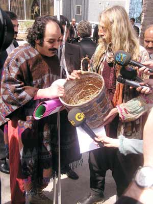Ankarada, elinde mızrağı ve Donkişot kıyafetli Osman Akkuş (47) isimli bir eylemci ve Sanço adını verdiği arkadaşıyla birlikte Devlet İstatistik Enstitüsü (DİE) önünde ilginç bir eylem gerçekleştirdi.