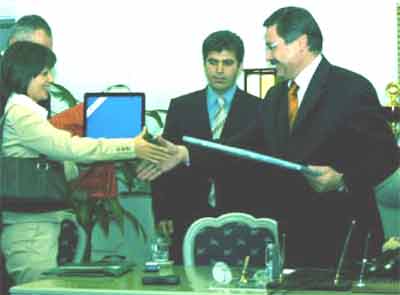 Basın toplantısının ardından Başkan Gökçek Kimsche ve Borges’e ziyaretlerinin anısına birer porselen plaket verdi.