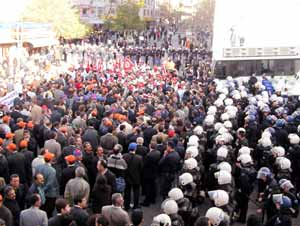 Emek Platformu üyesi bir grup, yaptıkları eylemle, SSK hastanelerinin Sağlık Bakanlığı’na devri ve Köy Hizmetleri’nin kapatılmasını protesto etti. Türk-İş Genel Merkezi’nde toplanan grup, Eylem Koordinasyon Çadırı’nı kurmak üzere Güvenpark’a yürüyüşe geçti. Sakarya Caddesi’nde durdurulan eylemcilerle polis arasında gerginlik yaşandı. Daha sonra Yüksel Caddesi’ne kadar yürümelerine izin verilen grup ’Yaşasın Sınıf Dayanışması’, ’Direne Direne Kazanacağız’, ’Emekçiye değil, IMF’ye Barikat’, ’Genel Grev Genel Direniş’ şeklinde slogan attı. Göstericiler adına basın açıklaması yapan Bağımsız Kamu Görevlileri Sendikaları Konfederasyonu (BASK) Genel Başkanı ve Emek Platformu Sözcüsü Resul Akay, bu eylemin bir uyarı eylemi olduğunu söyledi. Akay, 11 Kasım’da ikinci bir eylem yapacaklarını, 18 Kasım’da Başbakanlık önüne siyah çelenk bırakacaklarını ve 20 Kasım’da da Ankara’da büyük bir eylem hazırlığında olduklarını kaydetti.