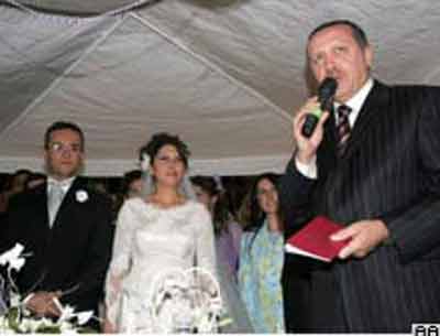 Başbakan Erdoğan, evlilik cüzdanını geline vererek, çifti tebrik etti.
