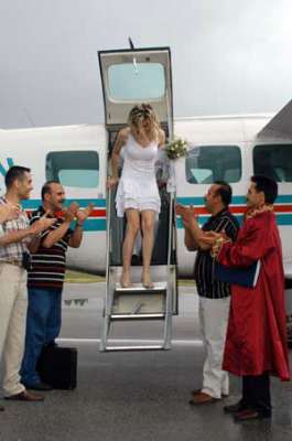 450 Euroya mal olan nikah töreni yaklaşık yarım saat sürdü. Ankara semalarındaki nikah töreninin ardından gelin ve damadı, uçaktan inişlerinde alkışlarla karşılayan anne ve babalarıyla yakın akrabaları genç çifti kutladı.