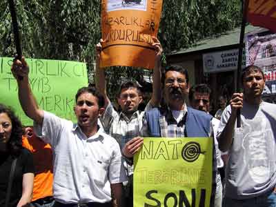 Kızılay Sakarya Caddesi'nde toplanan ve kendilerini 'Bush'a, NATO'ya Emperyalizme karşı Ankara Platformu' olarak nitelendiren bir grup, "Yaşasın İstanbul direnişimiz', " Gazınız, bombanız vız gelir vız", "NATO'dan hesabı emekçiler soracak" gibi sloganlar attılar. Grup adına bir açıklama yapan KESK Ankara Şubeler Platformu Dönem Sözcüsü İsmail Sağdıç, İstanbul'da iki tutum olduğunu belirterek bunlardan ilkinin onuru ve geleceği temsil edenlerin tutumu olduğunu diğerinin ise uşaklıkları tescillenen işbirlikçilerin tutumu olduğunu söyledi. Sağdıç, katilleri güvenlik çemberine alanların miting izni verilen bölgelerde bile saldırıda bulunduklarını vurgulayarak aynı tutumun bugün Galatasaray Lisesi önünde de devam ettiğini ifade etti. ABD'nin zirvede Türkiye'den istediklerini kabul ettirdiğini kaydeden Sağdıç, ABD'nin ve NATO'nun gerçek muhaliflerinin kendileri olduğunu söyleyerek gözaltına alınanların serbest bırakılmasını istedi.